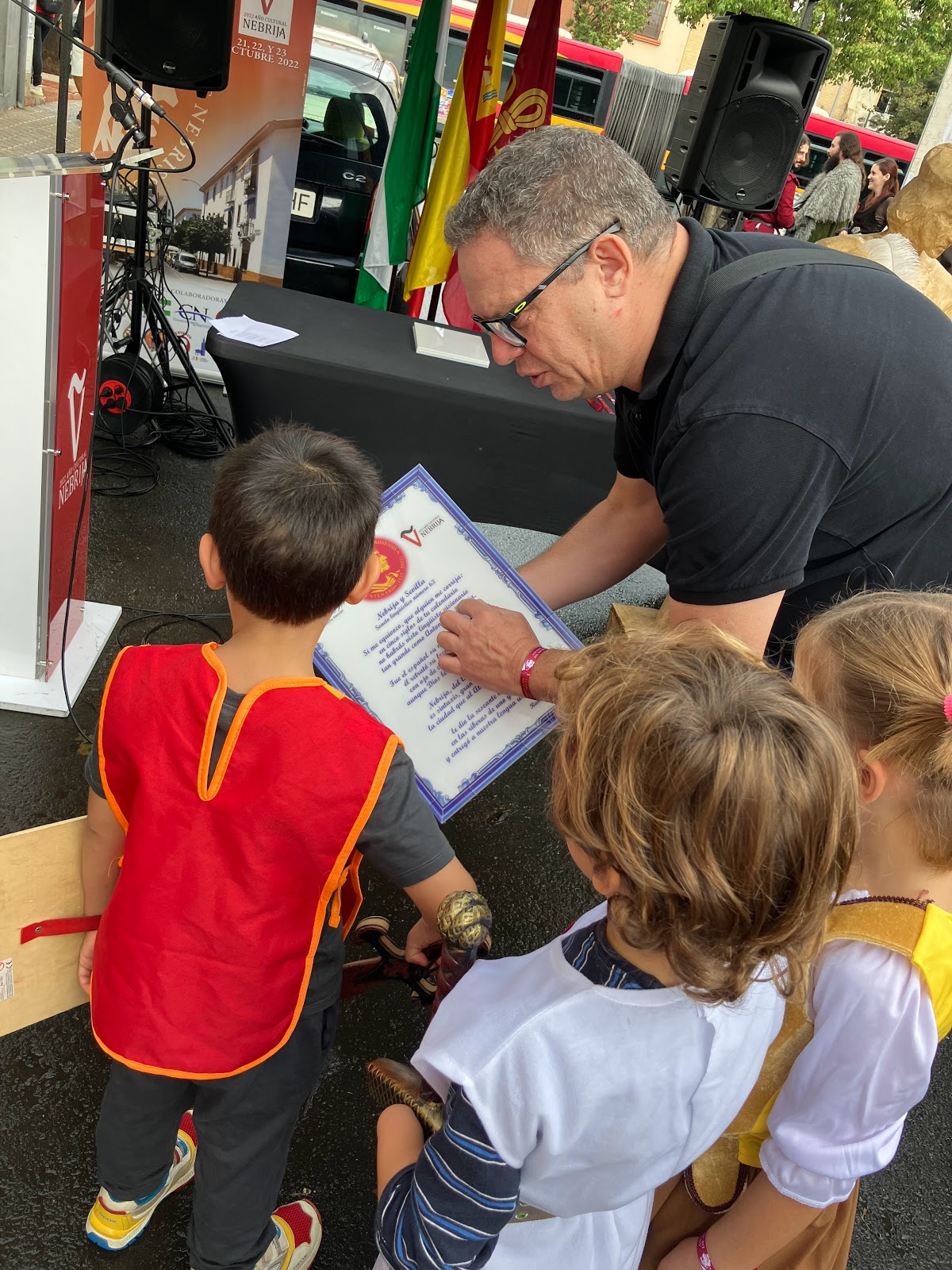 El día empezó lluvioso y desapacible, típico día otoñal, pero nuestro alumnado estaba nervioso y no era por el tiempo...de pronto llaman al timbre del colegio y para nuestra sorpresa vinieron a recogernos ¡LOS TEMPLARIOS! para escoltarnos hasta la C/ Antonio Nebrija.